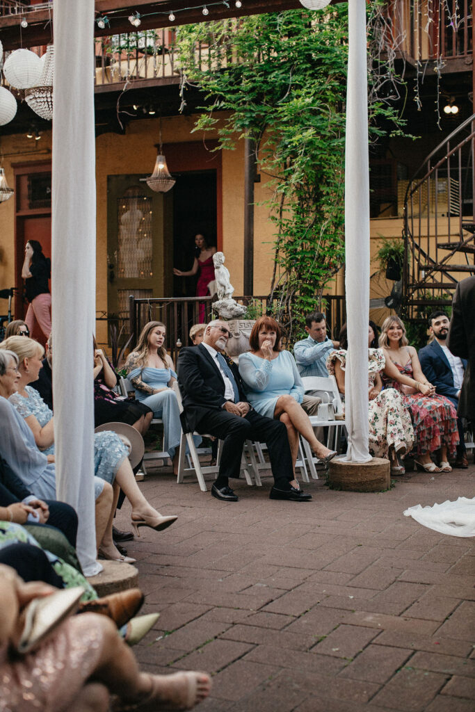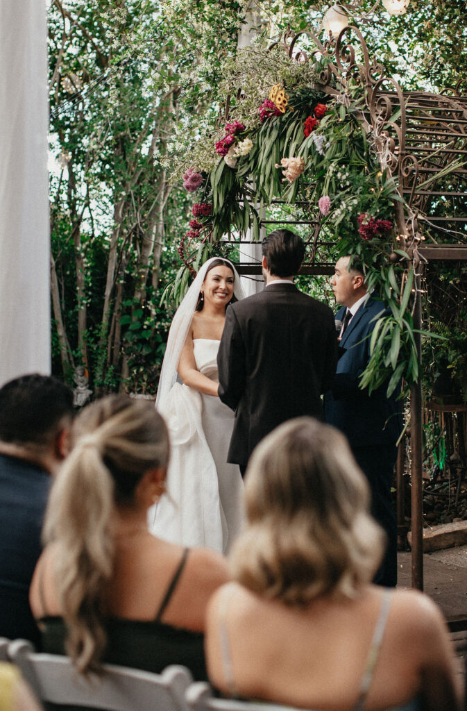 Because Mal and Ethan chose to do a first look earlier in the day, we were able to capture all of their couple portraits and most formal photos before the ceremony. This allowed them to spend their entire cocktail hour fully present with their guests instead of being pulled away for photos. They laughed, hugged loved ones, and truly soaked in the moment — creating some of the most genuine, unposed memories of the day. These relaxed interactions are often the moments couples treasure most when they look back on their Avant Garden Houston wedding.