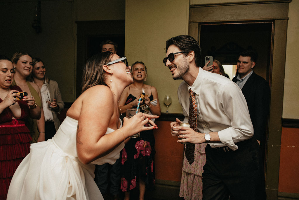 Once the music started, the celebration was in full swing. Mal and Ethan danced the night away with their guests, laughing, celebrating, and soaking in every second of the evening. From high-energy moments on the dance floor to playful snapshots wearing sunglasses together, the joy of the day carried straight through to the very end.
