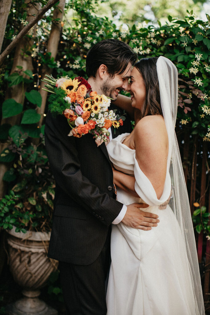 Every detail of Mal and Ethan’s Avant Garden wedding felt intentional and reflective of who they are together. Mal carried a vibrant bouquet full of personality, featuring a colorful mix of sunflowers, white daisies, soft pink blooms, and warm orange-toned roses. From their joyful bridal portraits to small, meaningful details — like a personal touch on her dad’s tie — everything about the day felt thoughtful and true to them. Their first dance to “How Lucky Am I” by Kate My Butts was especially emotional, with not a dry eye in sight.