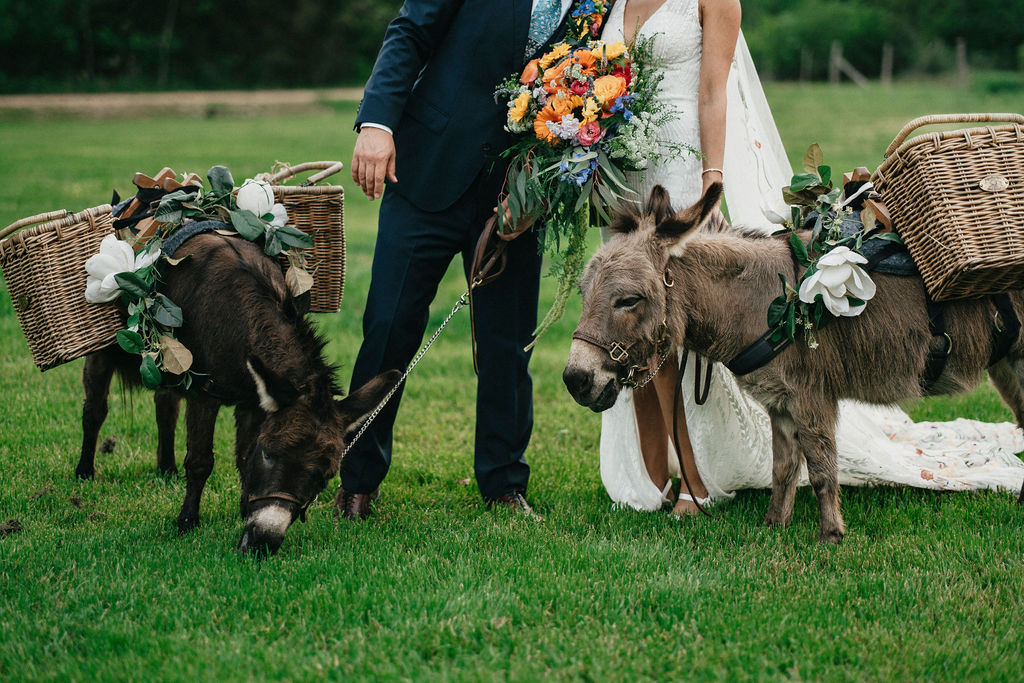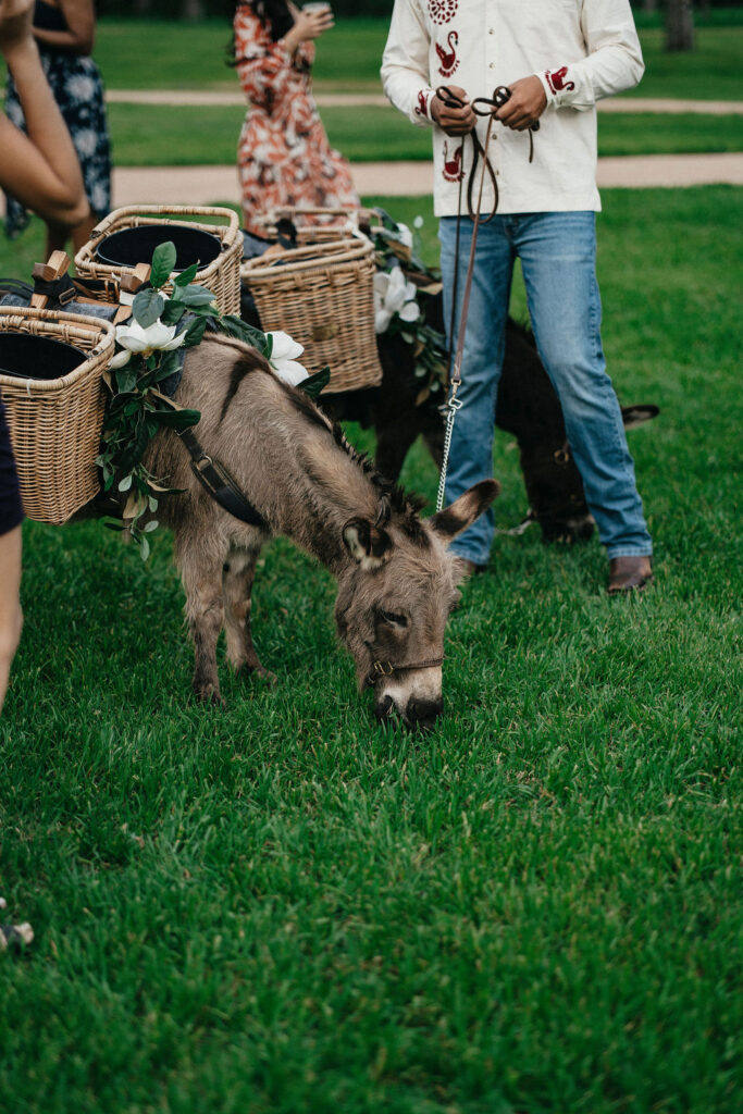 Now, let’s talk about the beer burros arguably the real stars of cocktail hour. Guests were instantly obsessed, and one cheeky little guy even took a bite out of Taryn’s bouquet mid-photo. (Honestly, who could blame him? The florals were that stunning.)