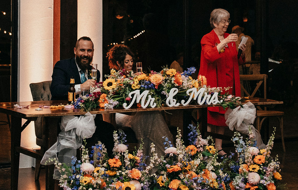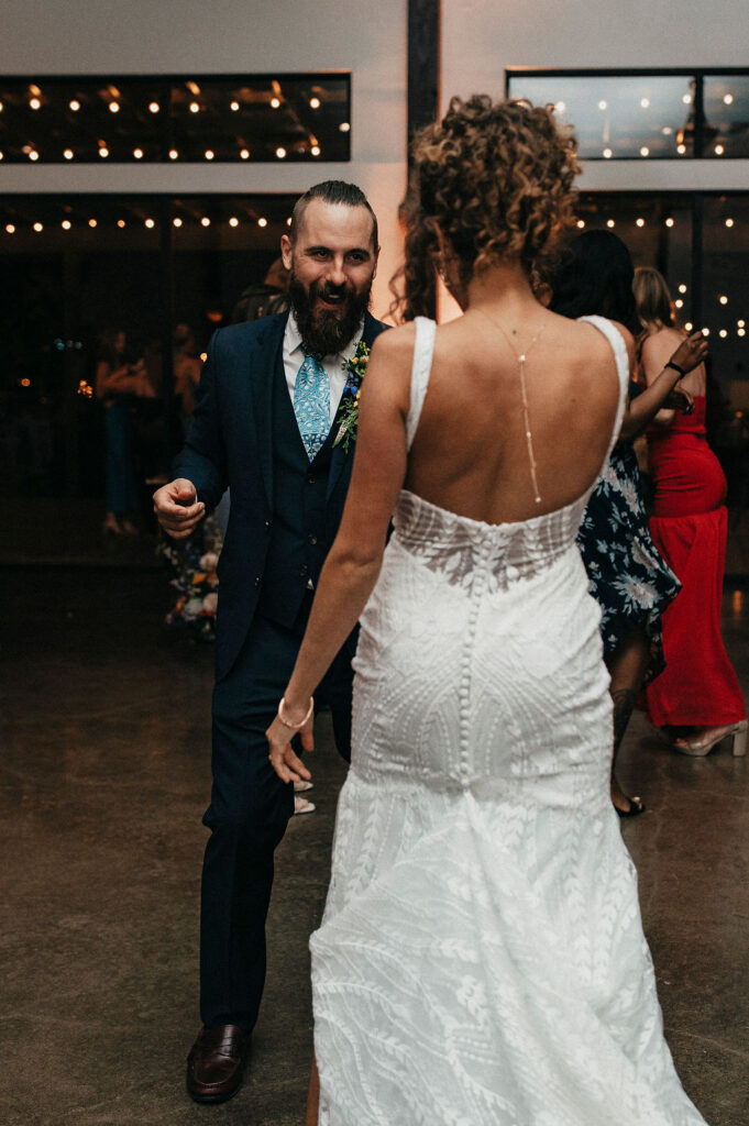 You’ll find cozy touches like string lights, a covered pavilion, and plenty of room to dance the night away. The venue team makes things simple with flexible vendor options and on-site coordination. They handle the big stuff so you can focus on the fun parts of your day. Taryn & Joe couldn’t have picked a better venue for their playful, emotional wedding!