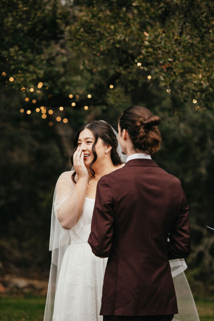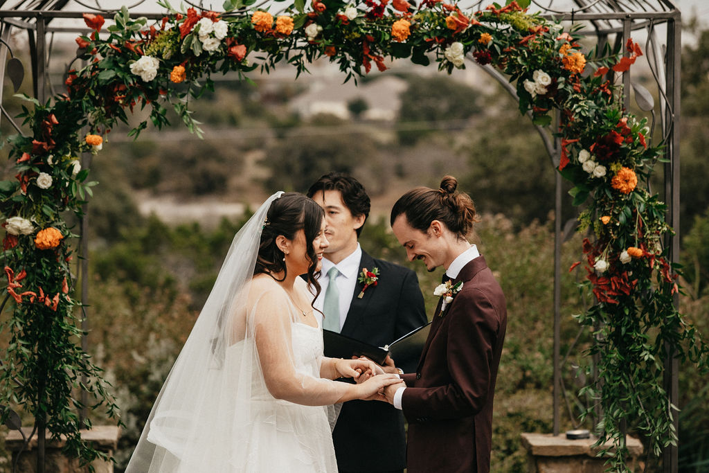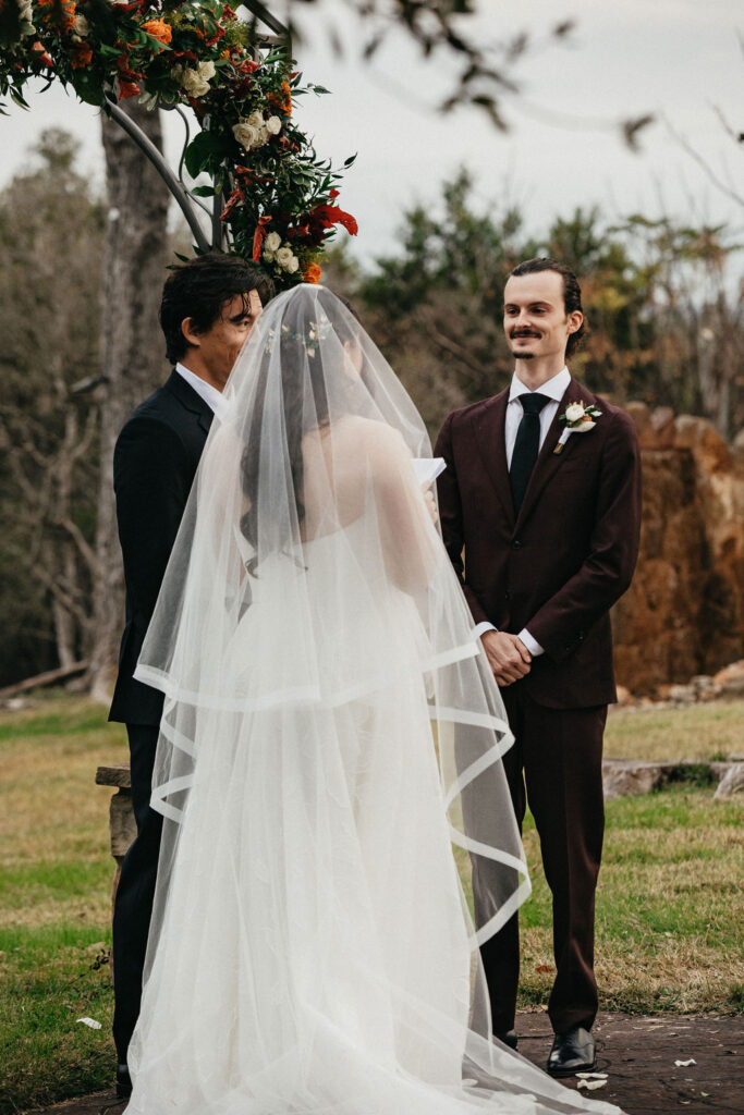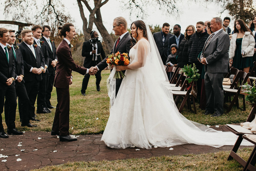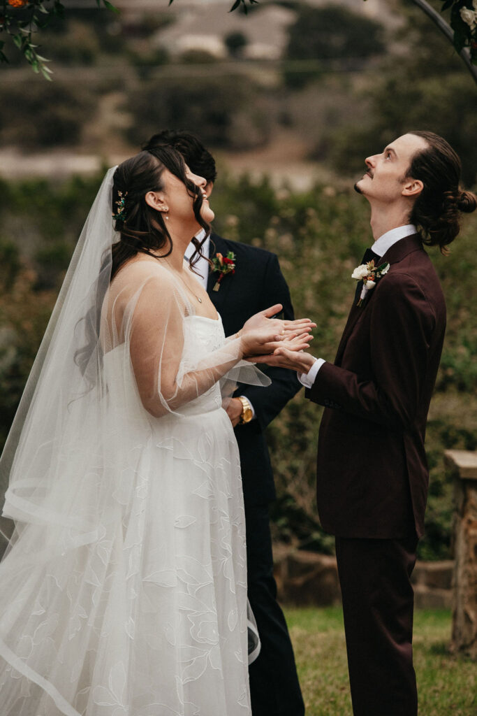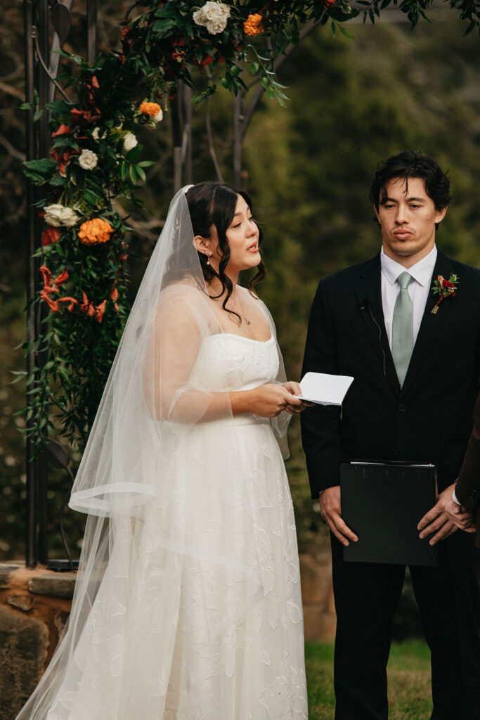 As the ceremony began, a soft winter rain rolled in. Instead of interrupting the moment, it made everything feel even more intimate and cinematic. Beneath umbrellas and misty air, Grace & Jarrett exchanged deeply personal vows that had everyone leaning in a little closer.