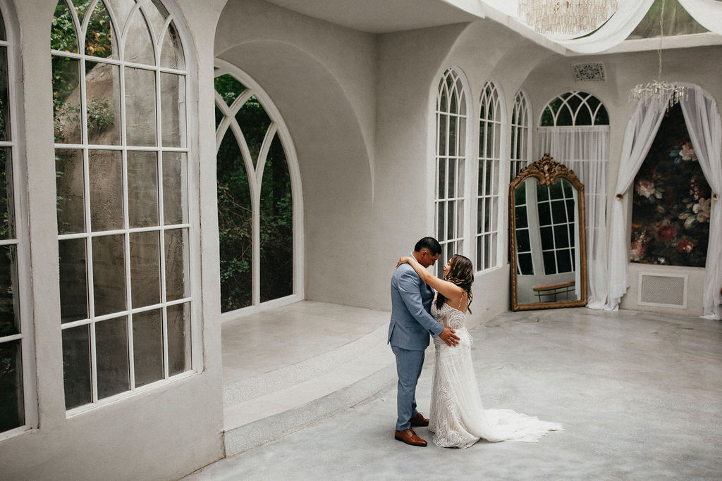 This French-inspired chateau wedding venue in Houston TX offers multiple ceremony spaces, beautiful natural light, and a layout that allows cocktail hour to happen while the reception space is flipped. Whether you choose an indoor ceremony complete with chandeliers or a Royal Garden wedding that allows guests to take in the grounds, this venue is fit for a fairytale.