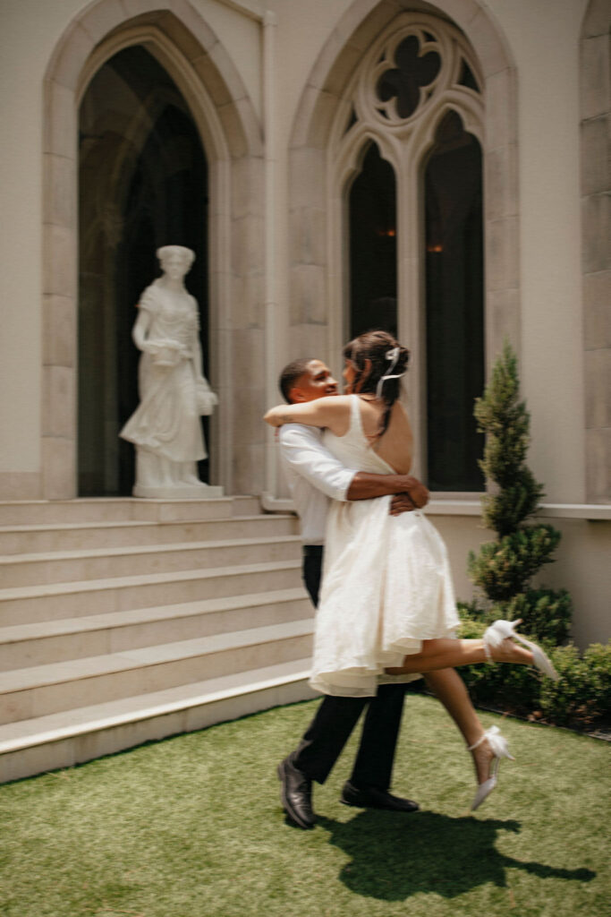 A well-built timeline is one of the most overlooked parts of planning!  Houston wedding timeline considerations often revolve around heat, light, and travel time. When it comes to portraits, golden hour is especially important here. Scheduling couple’s portraits later in the day allows for softer light and more comfortable temperatures. Midday portraits are best kept shaded or indoors whenever possible.