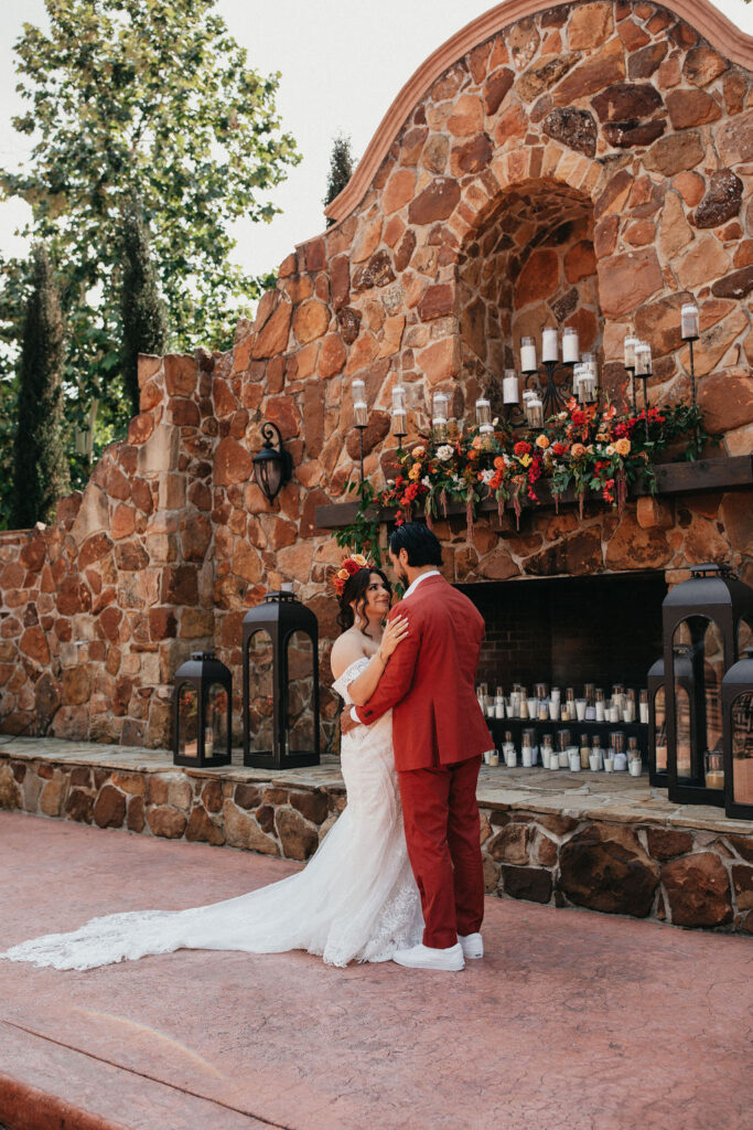 This Conroe wedding venue is one of my personal favorites to photograph! This Spanish-style location features an outdoor fireplace in the courtyard as the main ceremony space. Inside, there are getting-ready suites, a whiskey lounge, and a stunning reception area. Established on 17 rolling acres, it’s a picturesque getaway for couples and guests and makes for an unforgettable experience!