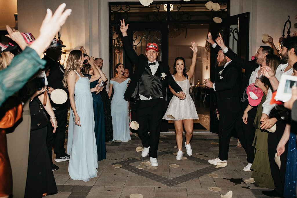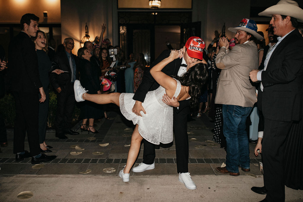 One of the most memorable moments of the night happened toward the very end—a Texas Tech tortilla exit, a tradition close to Sarah and Mason’s hearts. As guests gathered and prepared for the send-off, Sarah shared one final dance with her best friend on the floor.
