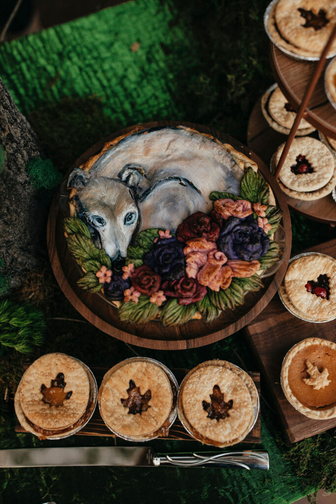 One of the sweetest personal touches? Dessert. Instead of a traditional cake moment, Ashley and Jake incorporated pie—with a custom illustration of their pup painted on top. A detail that perfectly captured their playful, heartfelt approach to the day.