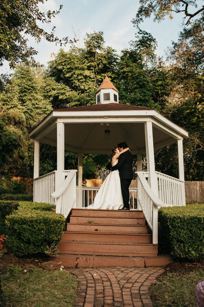 Chardonnay and Mario couldn’t have chosen a more perfect location for their elopement than Brenner’s. For couples planning a Houston elopement, Brenner’s on the Bayou offers a balance that’s hard to find. It feels elevated without being overwhelming. This venue offers privacy without feeling isolated. It’s romantic without trying too hard. They offer choices when it comes to ceremony & event spaces, including the gazebo where Chardonnay & Mario exchanged vows. From the deck with its scenic views to the beautiful indoor reception spaces, this venue is equipped to handle smaller gatherings or larger celebrations of up to 200 guests. (And the menu is equally impressive.)